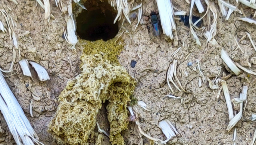 Und auch an der Bienenmauer tut sich einiges: Hier hat jemand nach dem Überwintern die schützende Bruthöhle verlassen...